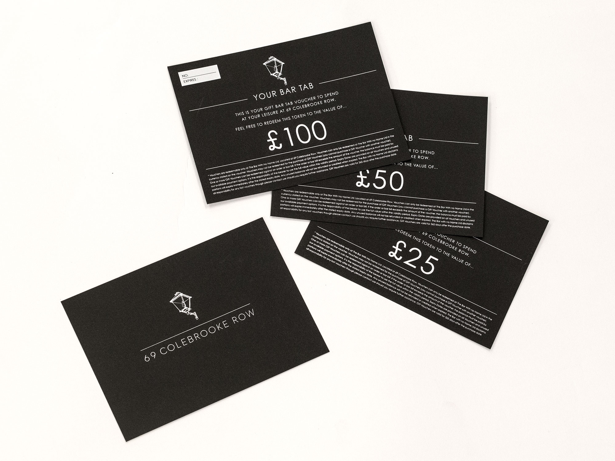 Though the majority of my work for Drink Factory was video production, there were occasional print jobs that needed doing for their bars– 69 Colebrooke Row and Bar Termini